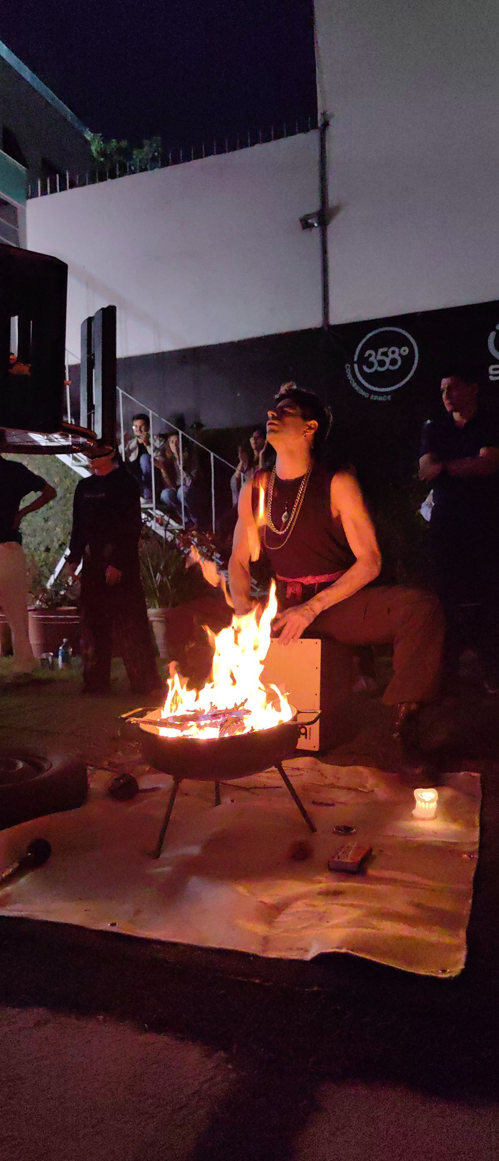 percusionistas y skaters al practicar sus disciplinas.